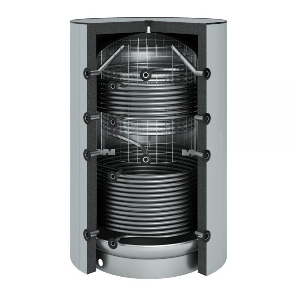 De boiler beschikt over 2 warmtewisselaars (optioneel 3 bij de 300 liter versie) waarvan de onderste tot de bodem reikt en beschikt over een grote oppervlakte.